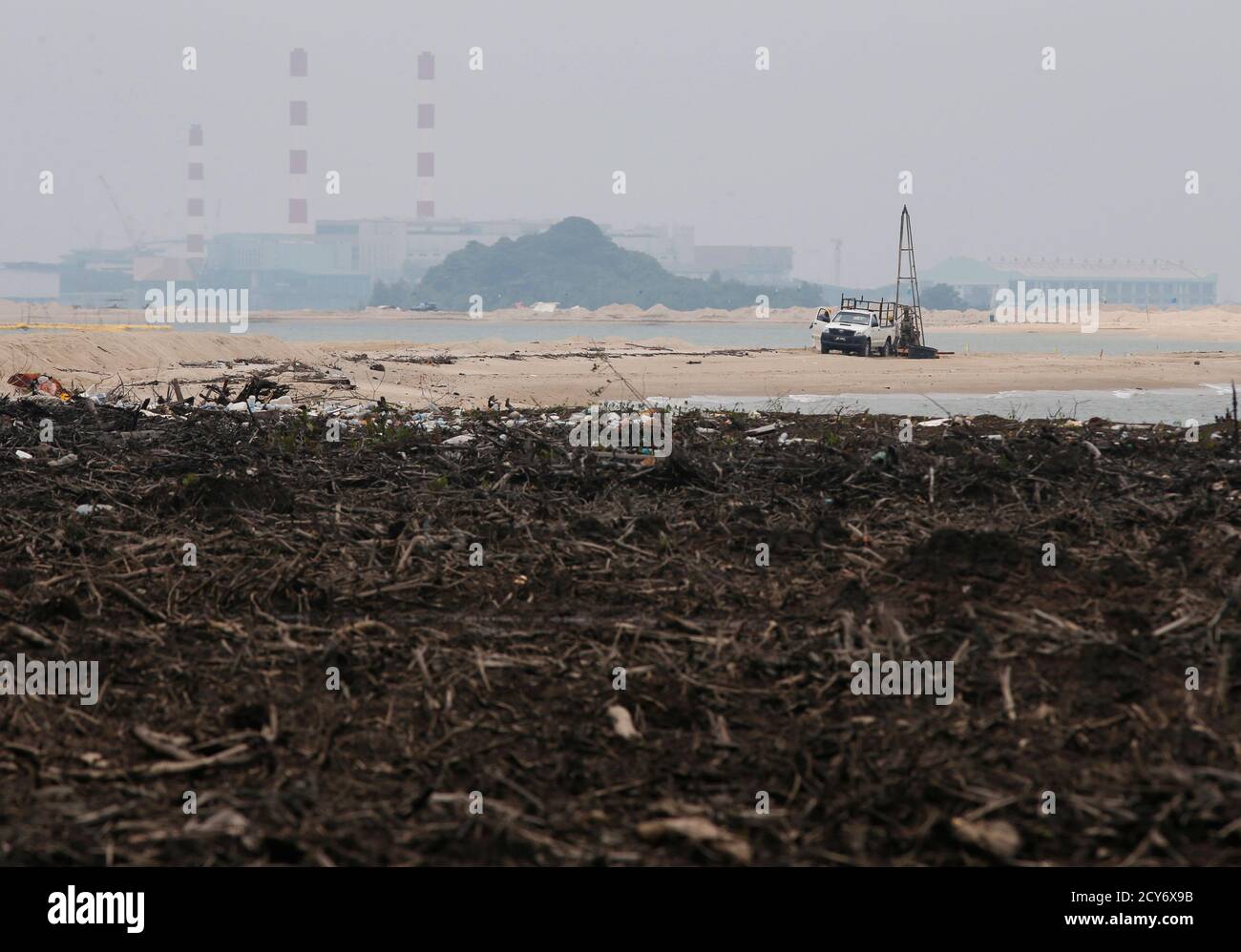 A Team Of Workers Carry Out Soil Investigation Works At The Forest City Coastal Land Reclamation Site Off Tanjung Kupang Southern Johor September 9 2014 Land Reclamation Work Began This Year On